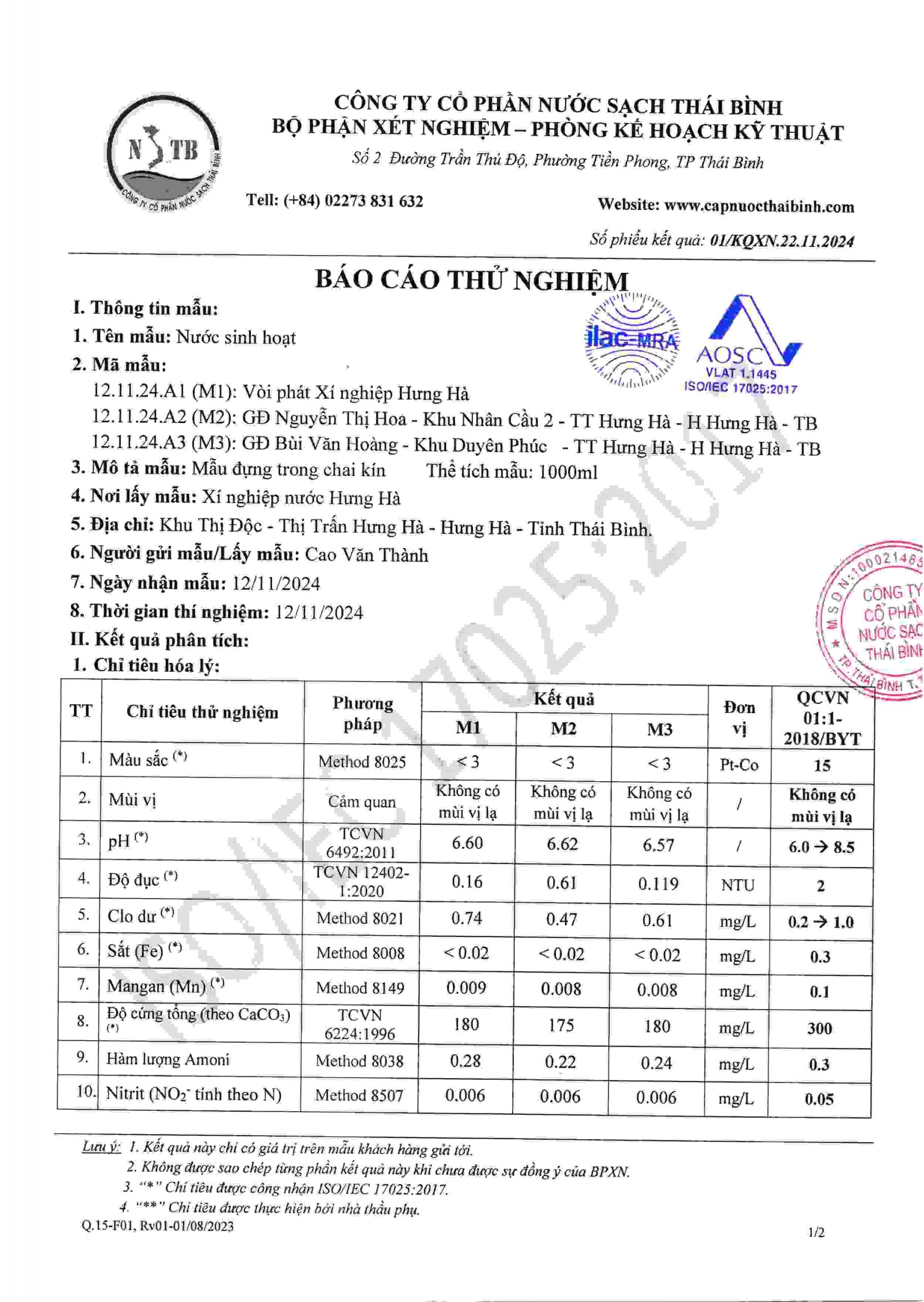 Được xuất bản vào 2 Tháng 12, 2024 tại 1817 × 2560 trong Kết quả kiểm nghiệm chất lượng nước XNN Hưng Hà Quý IV-2024