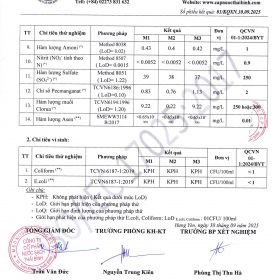 Kết quả kiểm nghiệm chất lượng nước XNN Vũ Thư Quý III-2025