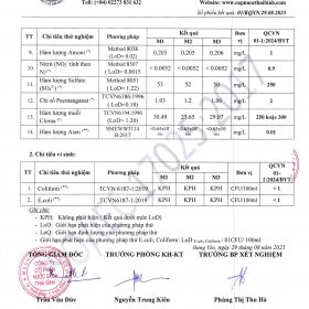 Kết quả kiểm nghiệm chất lượng nước XNN Thành Phố Quý III-2025